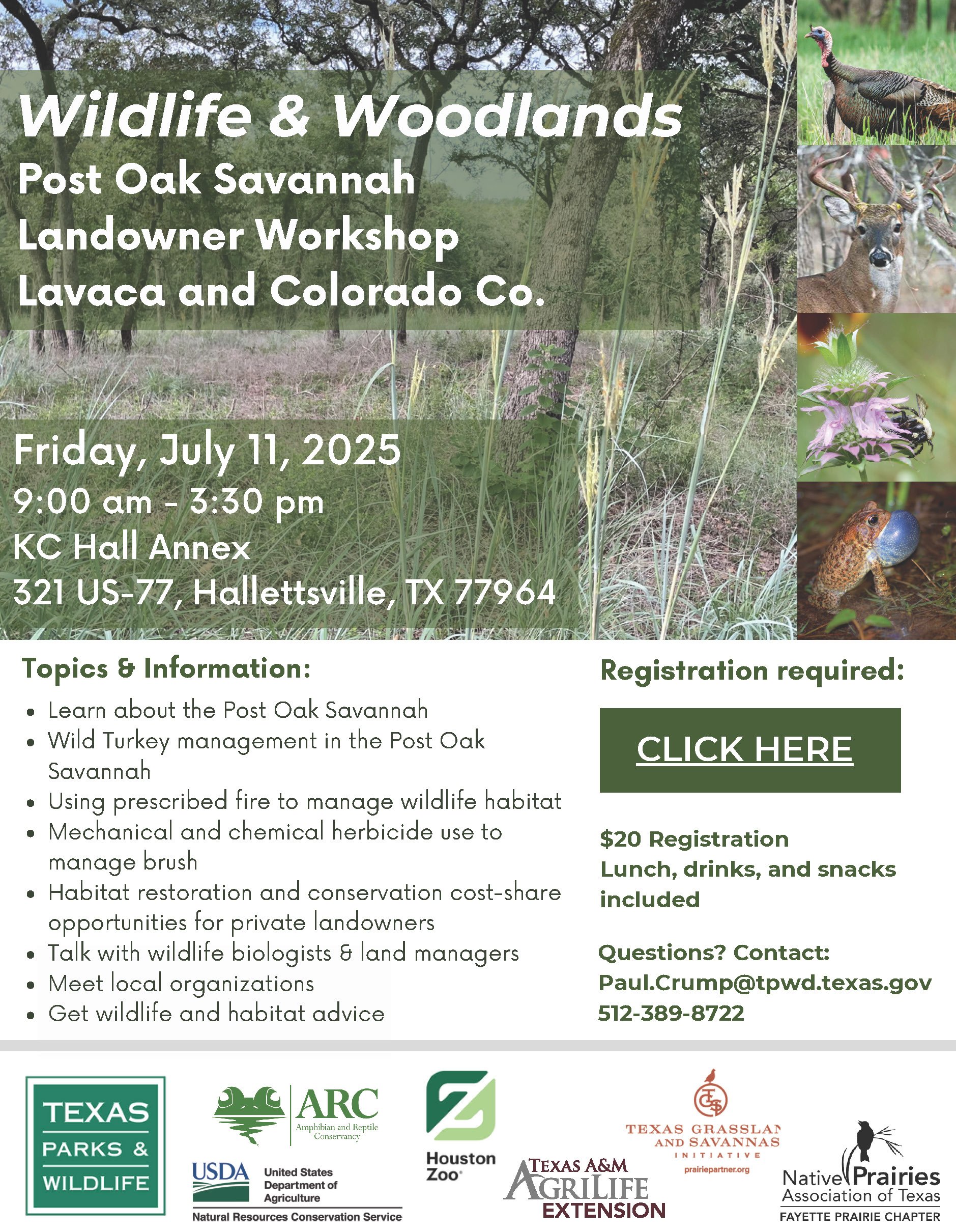 Partners and Sponsors: Texas Parks & Wildlife, Amphibian and Reptile Conservancy, Natural Resources Conservation Service, Houston Zoo, Coastal Prairie Conservancy and Fayette Chapter of the Native Prairie Association of Texas